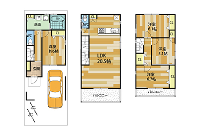 1F水回り、LDK 20.5帖の4LDK PLAN 新築戸建て