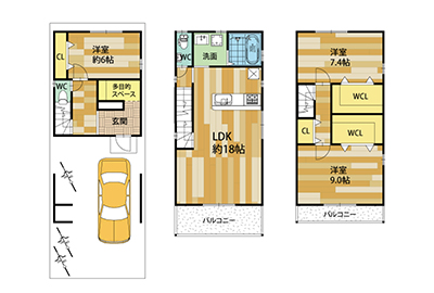 2F水回りのLDK 約18帖の3LDK PLAN 新築戸建て